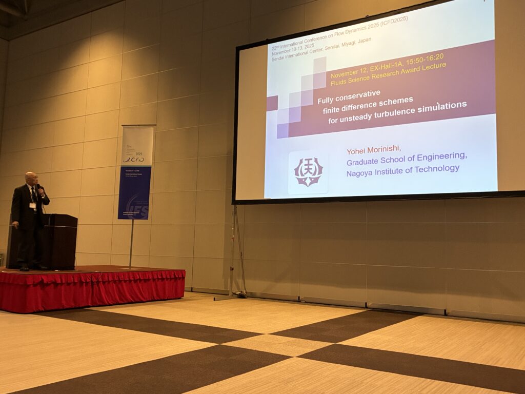 森西洋平教授は、乱流の非定常数値計算に適した完全保存型差分スキームの開発に関する研究が評価され、流体科学研究賞を受賞しました。