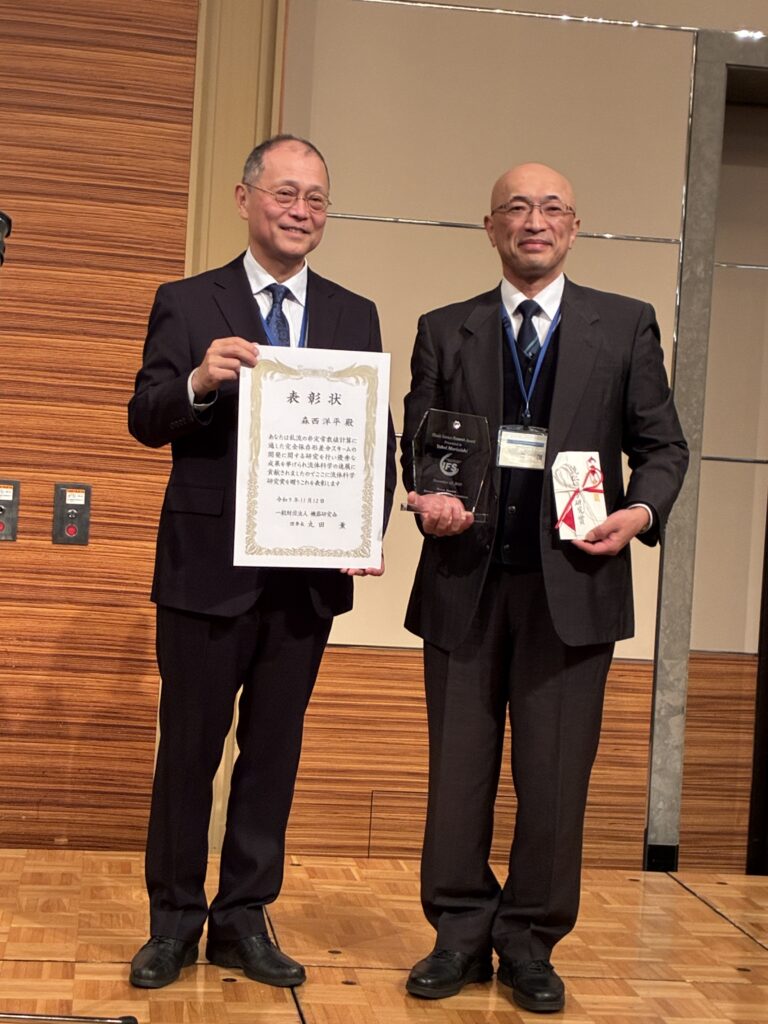 写真2:授賞式にて(右が森西洋平教授、左は贈賞者の東北大・丸田薫先生)